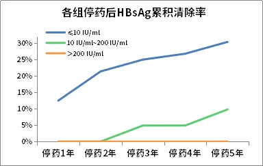 01停药时HBsAg水平越低5年内HBsAg清除几率越高